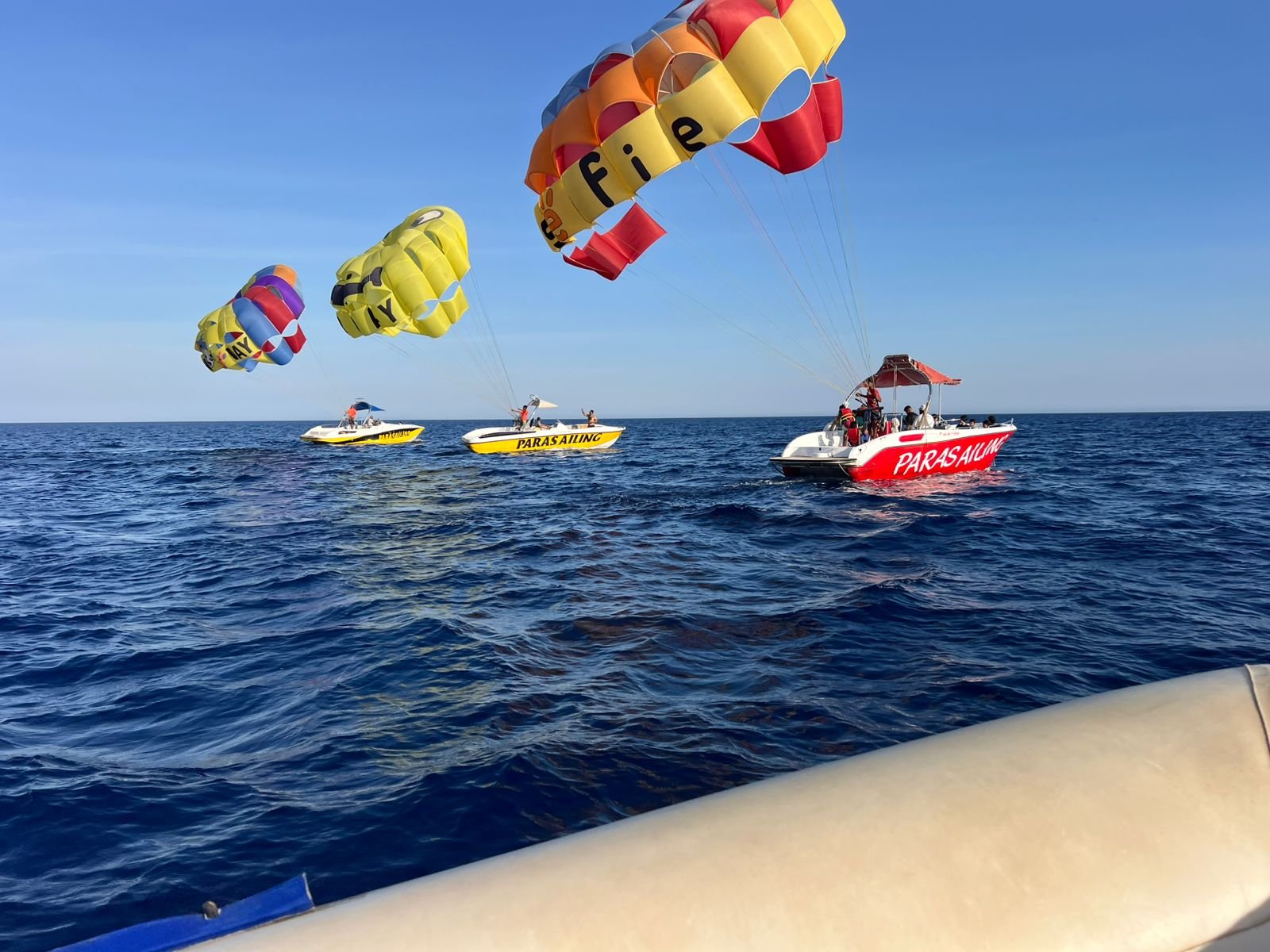 Давно хотел попробовать парашют за катером — и это было круче, чем я думал! Дайвинг тоже на уровне. Банан весёлый, особенно когда нас специально скинули в воду Отличный день!